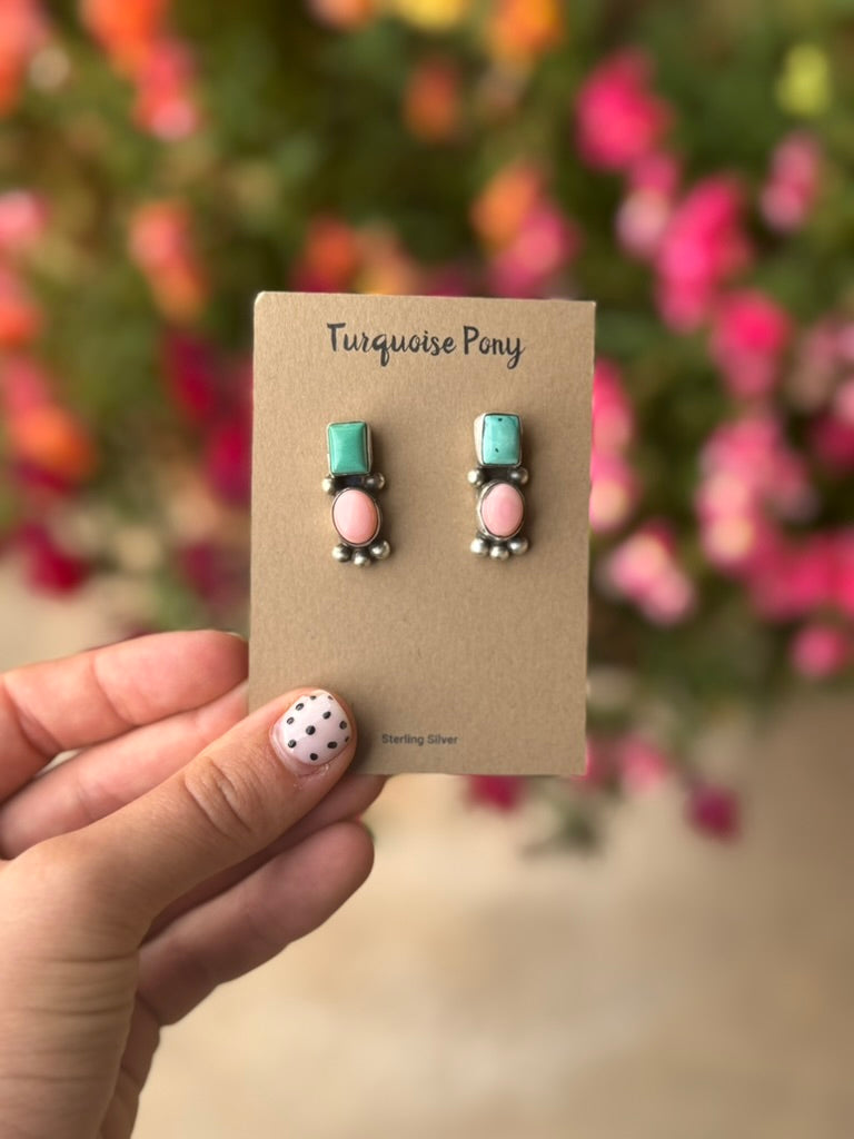 Pink Conch and Turquoise Sterling Silver Studs